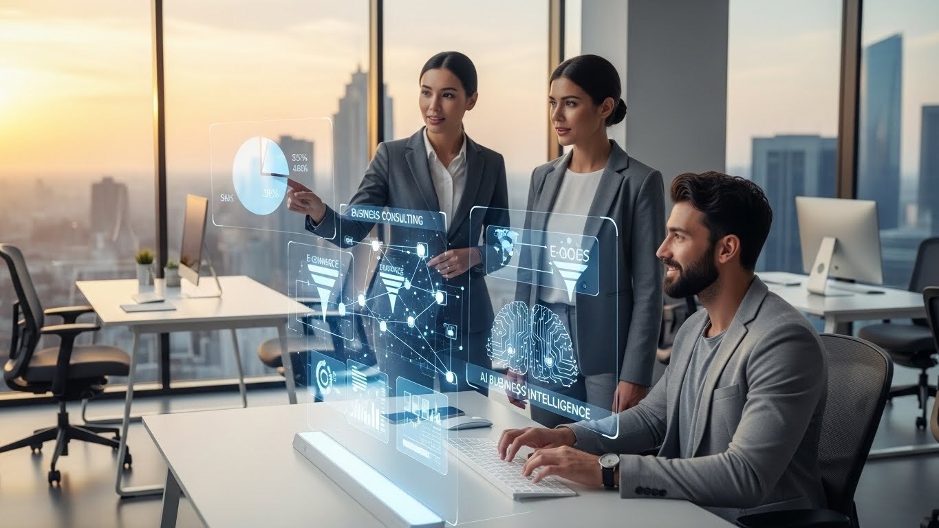 We help organizations grow, scale, and remain competitive by combining strategic consulting with advanced AI, data-driven solutions, and scalable e-commerce ecosystems — from initial strategy to full implementation. Our work sits at the intersection of business strategy and technology, with a clear focus on what matters most: ROI, operational efficiency, and sustainable growth.